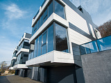 Стильное архитектурное решение в лучших традициях современного хай-тека выгодно выделяет дома на фоне остального ансамбля застройки. При этом они максимально гармонично вписаны в природный ландшафт. В отделке фасадов использованы дорогостоящие и экологичные материалы – еще один аспект, свидетельствующий об уникальности и статусе домов.