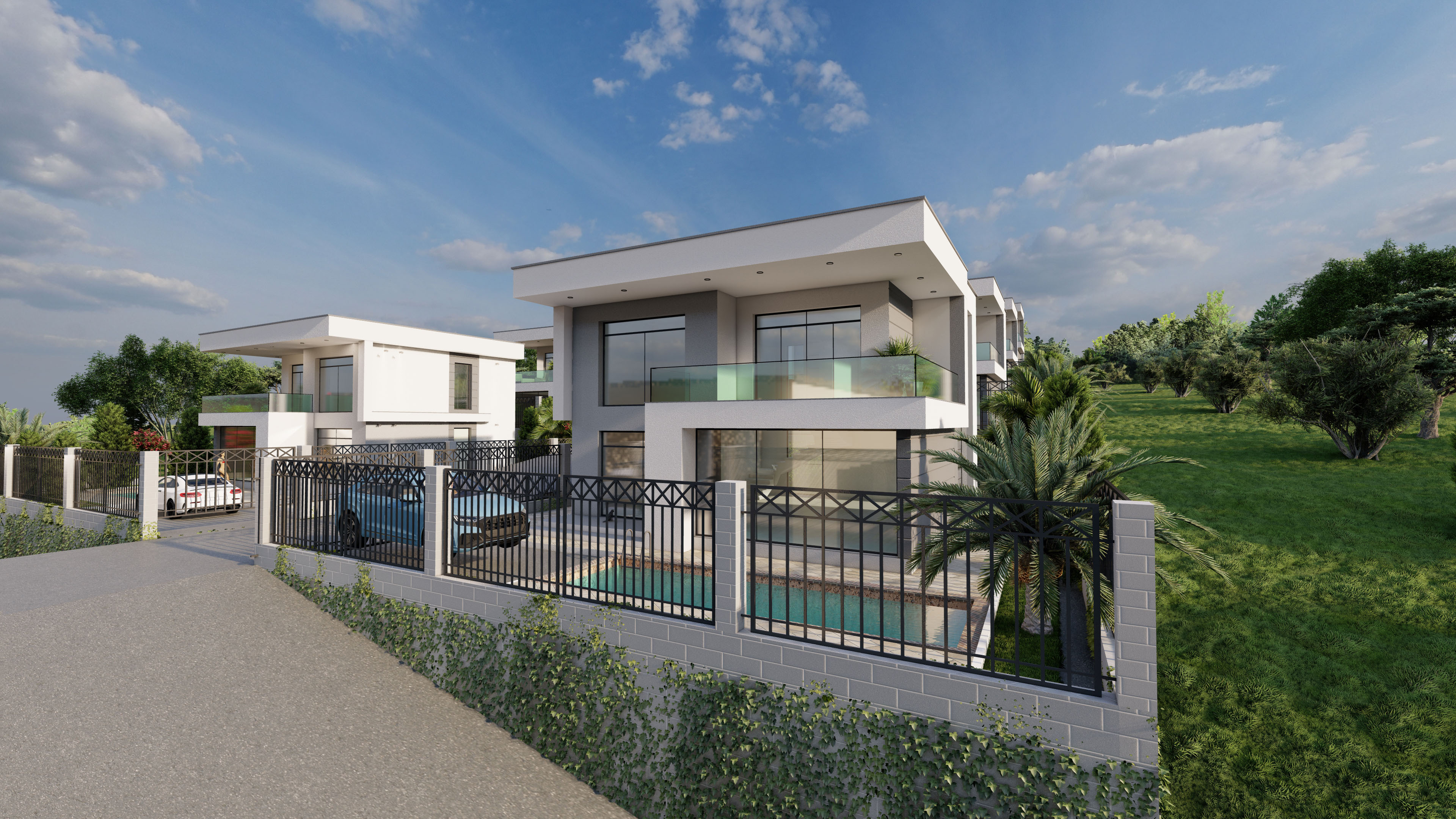 Современная архитектура коттеджей самым идеальным образом вписывается в естественный ландшафт и смотрится очень стильно. Внешняя эстетика домов дополнена стильным ландшафтным дизайном. На приусадебных участках высажены пальмы, кипарисы. Все это смотрится действительно очень красиво.