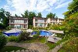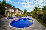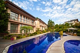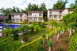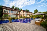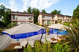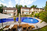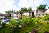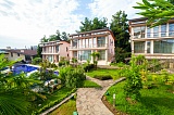 Коттеджи, принадлежащие к категории «А» располагаются в верхней части поселка. Их характерная черта – широкие балконы, которые можно использовать в качестве личной зоны для отдыха. Тип «В» отличается панорамным остеклением, наличием в цоколе гаража и видом на бассейн.