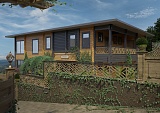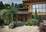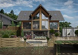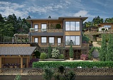 Используемые материалы на фасаде: Витражи, окна, двери – деревянный профиль цвет - серый; стеклопакеты; утеплитель –минерало-ватные плиты; финишные отделочные материалы фасада- дерево (крашеное); Экраны ограждения балконов – нержавеющая сталь, стекло.
