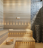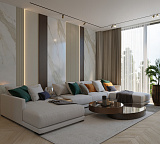 - Наружные стены — итальянская керамогранитная плитка Laminam в 4-х цветовых решениях