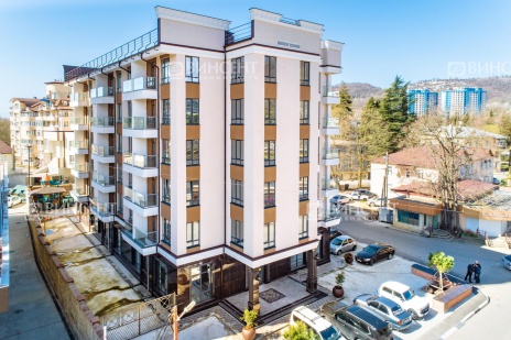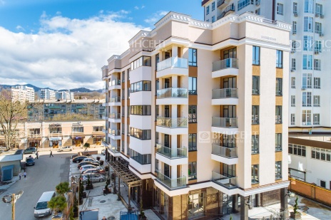 Новостройка в центре Адлера, состоящая из 9-и этажей, квартиры свободной планировки разной площади, развитая внутренняя инфраструктура.