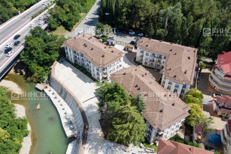 Комплекс находится в благополучном районе, около речки и моря. Удобный выезд в сторону центра Сочи, Адлера и Красной Поляны.