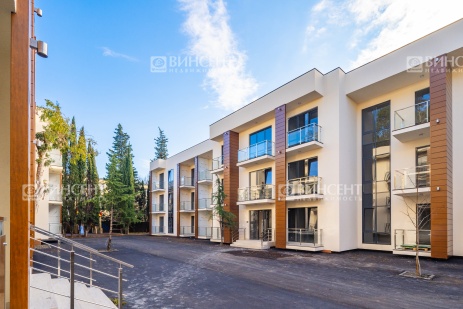 Современный 5-этажный дом, расположенный в 50 метрах от пляжа, квартиры разного метража и планировки, развитая внутренняя инфраструктура.