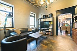 Элементы интерьера изготовлены по индивидуальному заказу, высокие потолки – 3.85 м, две входных группы. Для увеличения площади на 20 кв.м. оборудован бельетаж. Есть система кондиционирования, телефон и интернет.