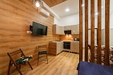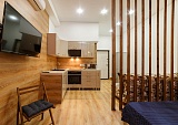 Помещение находится в цокольном этаже здания Екатерининского квартала. Имеется отдельный вход, можно организовать зону Ресепшн для персонала. 7 готовых одно и двухкомнатных апаратментов идеальны под сдачу.