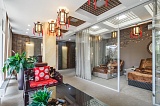 Помимо медицинского центра в состав предложенного объекта также входит зал для проведения лекций и семинаров, зал для занятий фитнесом или же оздоровительной гимнастикой, каминный зал, свой собственный ресторан, а также гостиничная часть, в состав которой входит 20 номеров категорий «стандарт» и «люкс». В гостиничной части комплекса также выполнен очень дорогой и стильный ремонт, увязанный с общей стилистической концепцией, установлена вся необходимая мебель и климатическое оборудование. В холле на первом этаже находится стойка для специалистов ресепшн-службы.