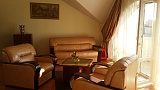 На первом этаже расположились апартаменты с отдельным входом: в их площадь входит просторная 40-метровая терраса, 2 спальни, гостиная, кухня, с/у, ресепшн, кабинет. Эти апартаменты могут использоваться как для личного проживания хозяев, так и для постояльцев гостиницы.