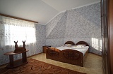 Площадь самой гостиницы составляет 500 квадратных метров, высота – 3 этажа. Отделка – евроремонт. Некоторые комнаты полностью меблированы и оборудованы кондиционерами и телевизорами (полноценные гостиничные номера). Участок – 6 соток.