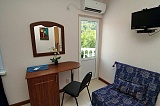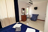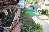 От береговой линии гостиницу отделяет всего-навсего 700 метров. Важным достоинством является тот факт, что на ее территории есть свое собственное кафе , бассейн, игровой комплекс для детей, мангал, парковка и т.д. В состав гостиницы входит четыре номера категории «стандарт», восемь«полулюксов», пять «делюксов» и один номер премиум-класса. Все номера в гостинице оборудованы всем самым необходимым, начиная от мебели, заканчивая фенами и сушилками. Отопление в каждом номере позволяет сдавать гостиницу не только летом, но и в межсезонье, получая при этом стабильный заработок.
