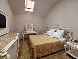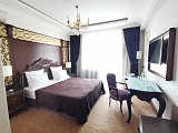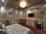 Респектабельная отделка интерьера – еще один весомый плюс в копилку достоинств. В основе внутреннего убранства отеля – ар-деко, дополненный нотками классицизма. Установлена дорогостоящая мебель, новая бытовая техника и климатическое оборудование в каждом номере. Все пребывает в идеальном состоянии!