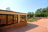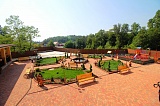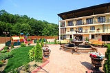 Прилегающая территория гостиницы благоустроена и озеленена. Венцом ландшафтного дизайна является фонтан, украшающий входную группу. Также здесь оборудована детская игровая площадка, паркинг и бассейн. Безопасность здесь обусловлена комплексом мер, в том числе – охранной сигнализацией и камерами видеонаблюдения.