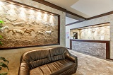 Ресторан отеля предлагает кавказскую и европейскую кухни своим гостям. Интерьер ресторана выдержан в стиле альпийских шале – много натурального камня, фрески, гобелены. Гости отеля будут проводить здесь время с комфортом и удовольствием.