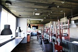 Интерьер гриль-бара выполнен в современном стиле, сочетающей в себе хай-тек и западную классику. Установлены столы для посетителей, барная стойка, есть плазменный телевизор и wi-fi.