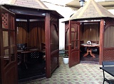 Общая площадь основного здания 130 кв.м. + беседки за кафе и столики на улице.