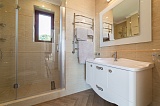 В апартаментах две шикарные спальни с выходом на общую просторную террасу с панорамным видом на море, в каждой спальне имеется собственный санузел с душевой. Огромный зал-кухня-столовая с выходом на террасу и гостевым санузлом. Все оборудовано современной дорогой техникой.