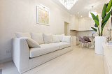 Отдельный плюс квартиры – стильный дизайнерский ремонт в основе которого лежит современный классический стиль. Светлая палитра красок, преобладающая в оформлении, наполняет пространство особым уютом и очарованием. Это великолепие действительно заслуживает того, чтобы увидеть его своими глазами. Мебель подобрана авторами проекта в полном соответствии с общей стилистикой.