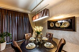 Квартира характеризуется качественными ремонтными работами с использованием дорогих материалов. В просторных помещениях вы встретите современный, выдержанный в классических традициях дизайн. Контрастные тона расцветок фасадов, обивки мебели свидетельствуют о желании создателей интерьера подчеркнуть его изысканность. Огромное зеркало в обеденной зоне, прозрачный стол и стулья создают комфортные условия. Квартира полностью меблирована мебелью от известных итальянских брендов.