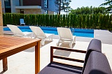 Коттеджный поселок закрыт от посторонних глаз субтропической растительностью. Все аппартаменты имеют собственный сад, бассейн с подогревом и выход к оборудованному собственному пляжу.