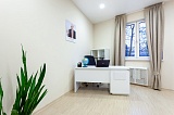 Лаконичная и универсальная отделка стен в светлой гамме. В помещении есть система кондиционирования, собственный санузел, удобная зона ресепшн. Три большие светлые аудитории, холл, кабинет директора, гардеробная комната, подсобное помещение, собственный туалет. Панорамные окна с видом на оживленную улицу с одной стороны и тихий дворик с другой, создают прекрасное дневное освещение. Помещение располагает двумя входами, есть два машиноместа.